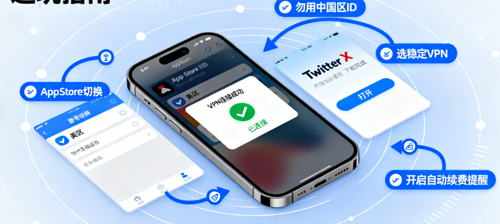 大陆 iOS 设备使用 Twitter X 的核心步骤:注册美区 Apple ID→下载 X 应用→连接正规 VPN→注册 / 登录账号,只要跟着步骤走,避开常见坑,就能顺利使用。如果遇到其他问题,可在评论区留言,会第一时间解答!