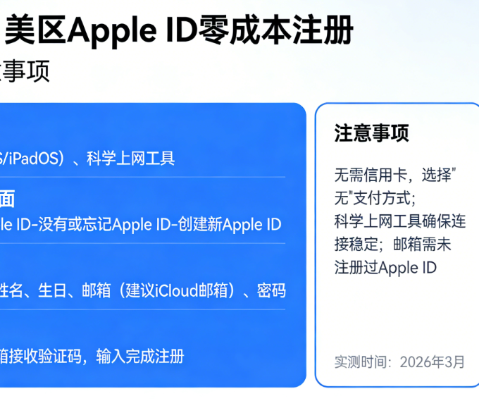 其实美区Apple ID注册一点都不难,新手不用怕,核心就记住两步,就能零失败、零成本注册,再也不用踩坑: