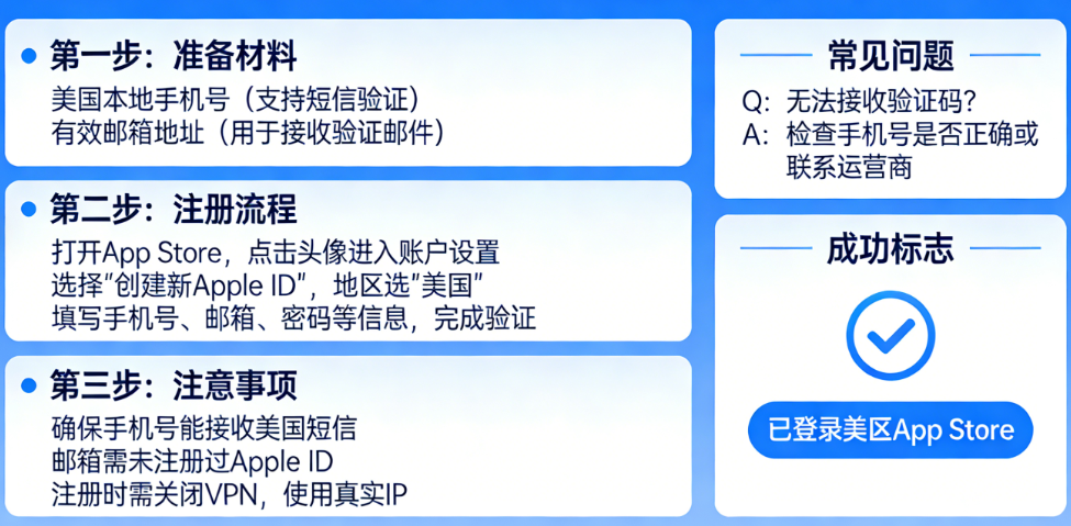 按照前文“正确操作步骤”登录美区Apple ID,此处重点补充2个新手常见问题及注意事项,避免登录失败或触发风控,确保操作顺畅,不影响ChatGPT、Netflix、Spotify等应用的下载进度: