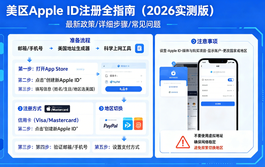 本文结合2026年最新实测经验,以“注册逻辑+实操步骤+避坑指南+资源推荐”为核心,采用精准化、结构化写作手法,全程无冗余表述,新手可按步骤直接操作,轻松完成注册,同时精准get美区高价值应用与游戏。