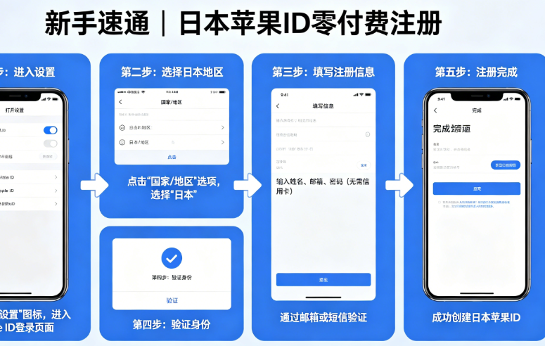 新手注册日本苹果ID,核心就两点:付款信息选“なし”(无),填写通用日本地址,无需日本手机号、无需绑定银行卡,全程零付费、零门槛,跟着本文步骤操作,5分钟就能一次性成功。