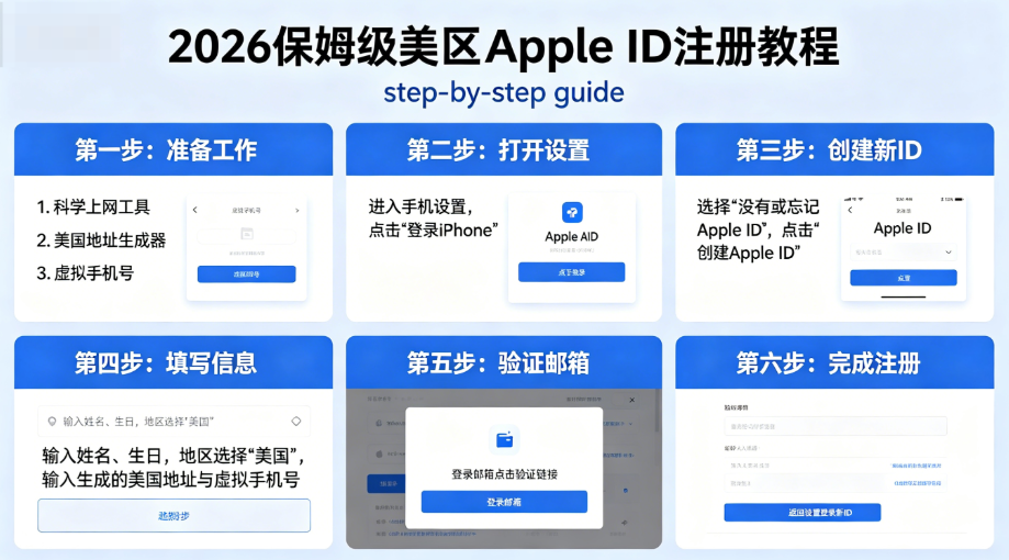 2026年无需花钱购入共享账号,不用隐私实名,不用绑定手机号与银行卡。照着这份实测精细化教程,五分钟即可自主注册安全合规美区Apple ID。严守用号规范,远离违规红线,就能长效稳定解锁海外原版工具、全球首发手游、独家优质应用。自主注册安全可控,告别隐私泄露与封号风险,全方位升级苹果全生态使用体验。